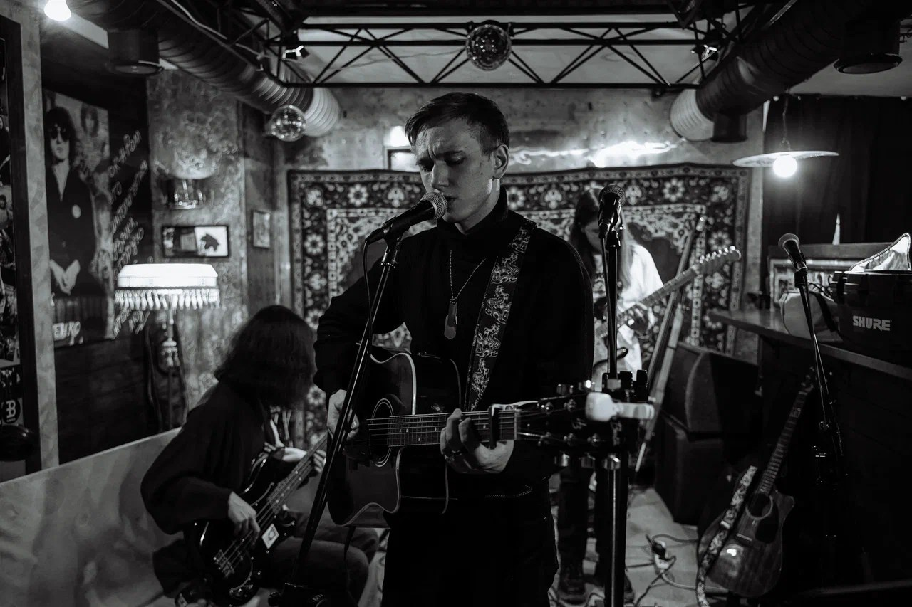 Моя история началась с того, что я услышал в 2019 году разные «гитарные группы» и во мне что-то екнуло — возникло непреодолимое желание взять в руки гитару и научиться играть. Гитару я попросил у двоюродного брата и начал учиться самостоятельно дома, день за днем разучивая различные мелодии. В один из дней я увидел афишу выступления одной из тех самых «гитарных групп» и решил сходить на концерт. В тот раз я не нашел себе компанию и пошел туда один и обомлел. Какие-то крутые чуваки с гитарами поют свои песни, и весь зал им подпевает. В голове мысль: «Хочу так же». Нашел крутую электрогитару и полгода ждал своего дня рождения, чтоб родители мне ее купили, потом ждал еще два месяца, пока мне ее привезут из-за рубежа. Дождался! Кроме электрогитары ничего не было. Я просто сидел и бряцал по ней с великой радостью. В это же время мой товарищ тоже параллельно со мной учился играть, и у него тоже была электрогитара. Мы решили, что нам нужна группа. Нашли ребят, подготовили три песни для выступления и через пару месяцев выступили на мероприятии, где было чудовищно большое количество разных групп (15 за вечер). Мы привели всех друзей, хотя сами были очень неловкими и играли не очень, но это был невероятный кайф от того, что вокруг громкая музыка и эту музыку издаешь ты! Не передать словами. В начале своих выступлений я играл кавера и просто кайфовал от нахождения на сцене и воспроизведения любимых песен. Прошло несколько лет, как ехал на этом чувстве. Мы успели дать огромное количество концертов в Доме печати, сыграли open air фестиваль и даже разок выступали на площади 400-летия Тюмени. Чувство от крутости нахождения на сцене ушло, да и народу на концерты стало ходить гораздо меньше, наша кавер-группа распалась, т. к. мы уже выпускались из школы и кто-то поступал в другие города, кто-то переставал играть на инструментах и петь.